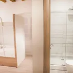 K vybavení koupelny patří prostorná sprcha a samostatná toaleta.